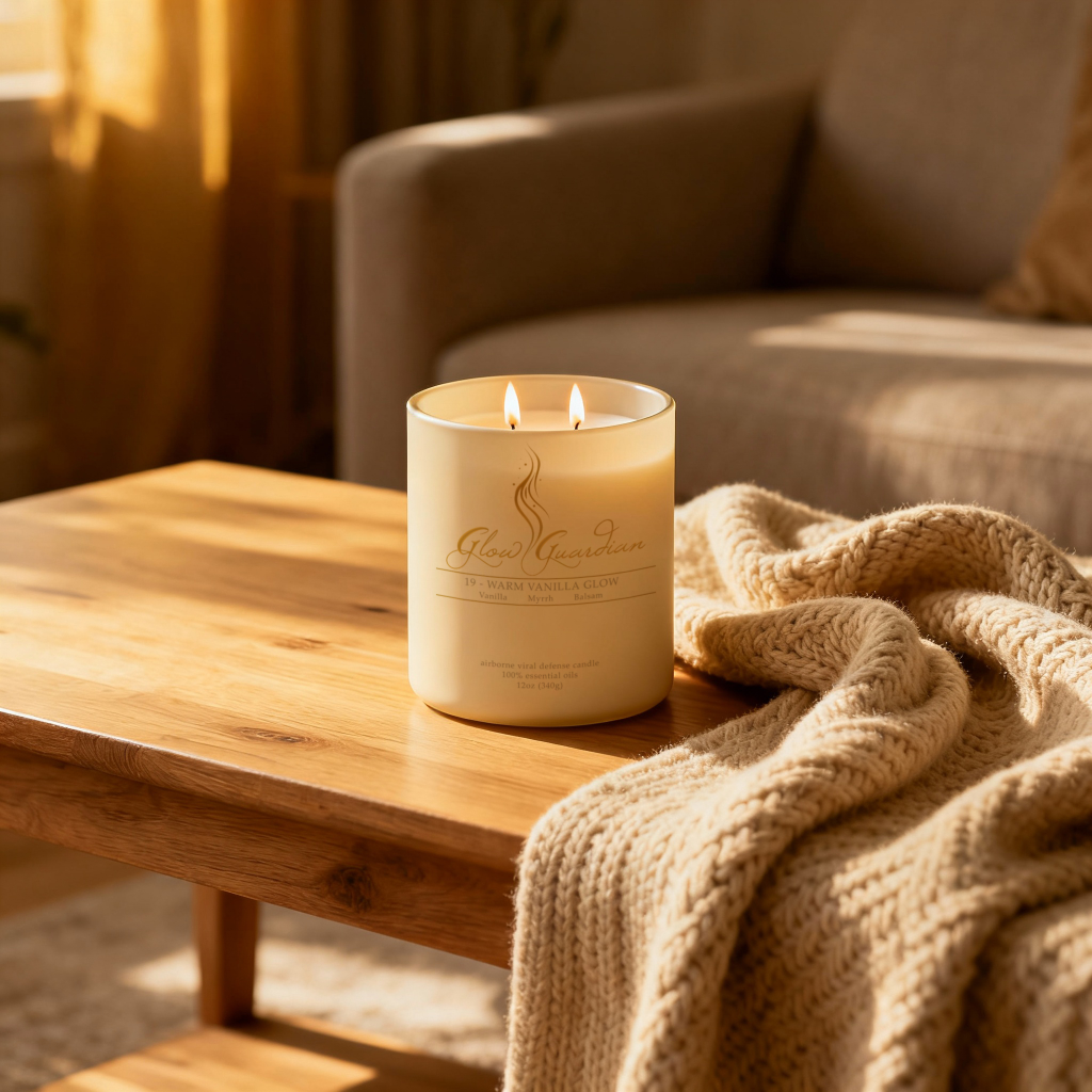 Your health is important, and our Warm Vanilla Glow candle helps protect it by killing dangerous airborne viruses and bacteria. Infused with Vanilla, Myrrh, and Peru Balsam, this gentle, comforting fragrance fills your home with warmth and calm while keeping the air clean and safe.